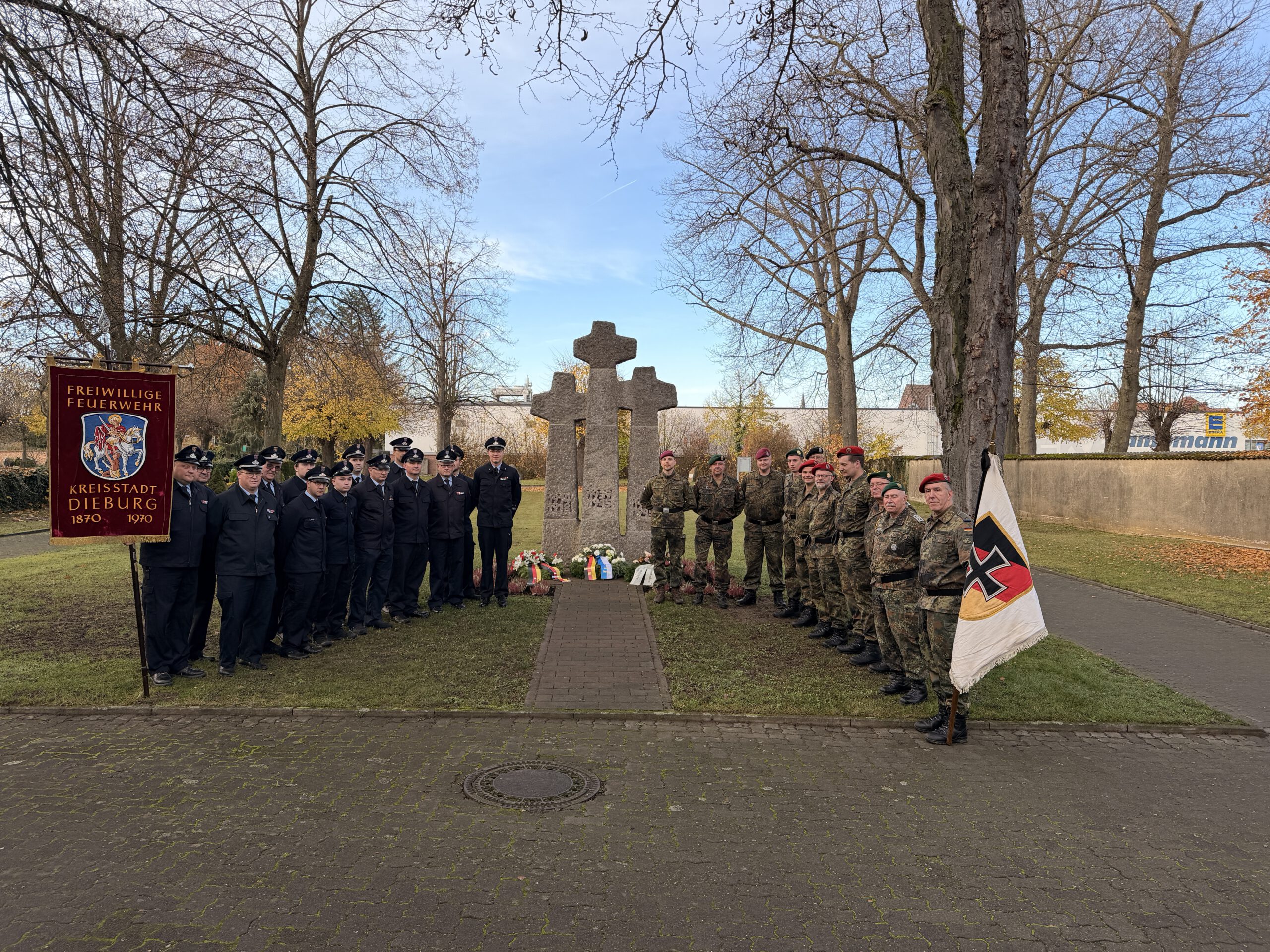 Anlässlich des Volkstrauertages haben die Freiwillige Feuerwehr Dieburg und die Reservistenkameradschaft Dieburger Land gemeinsam einen Kranz am Ehrenmal auf dem Dieburger Friedhof niedergelegt. Mit dieser Geste wurde an die Opfer von Krieg und Gewaltherrschaft gedacht und ein Zeichen für Frieden und Versöhnung gesetzt werden. Der Volkstrauertag ist ein stiller Feiertag,