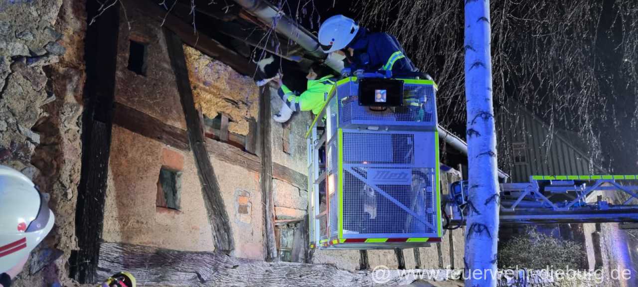 Mehr als drei Stunden lang versuchte die Halterin eines Katers, das eigene Tier von dem Dach einer Scheune zu locken. Als alle Versuche scheiterten, wusste sich die junge Frau nicht anders zu helfen, als den Notruf zu wählen.
