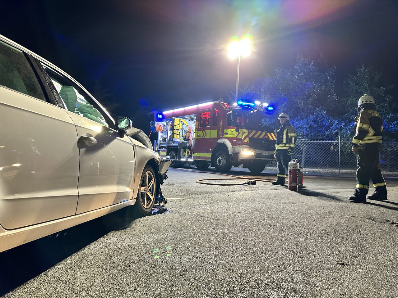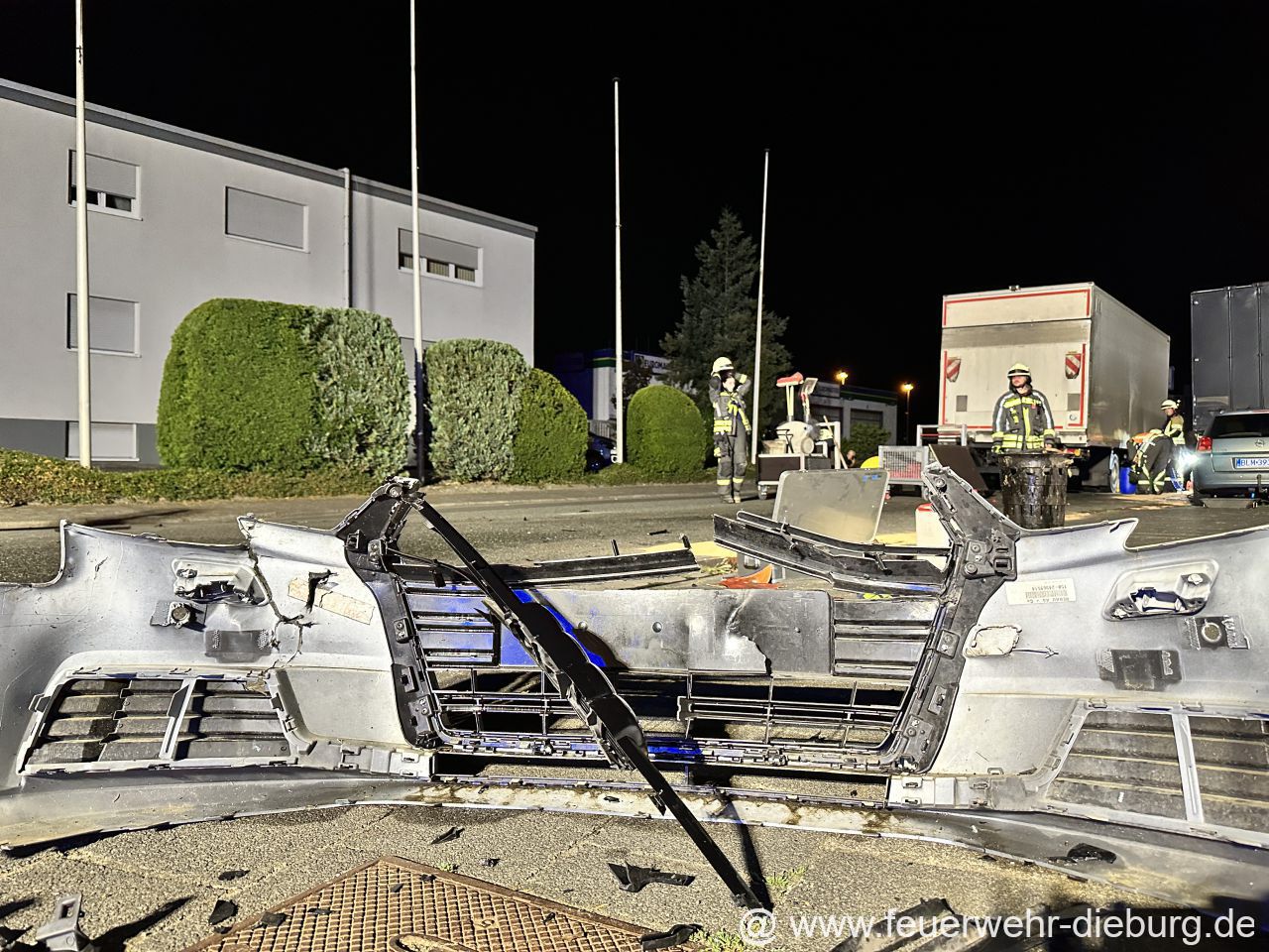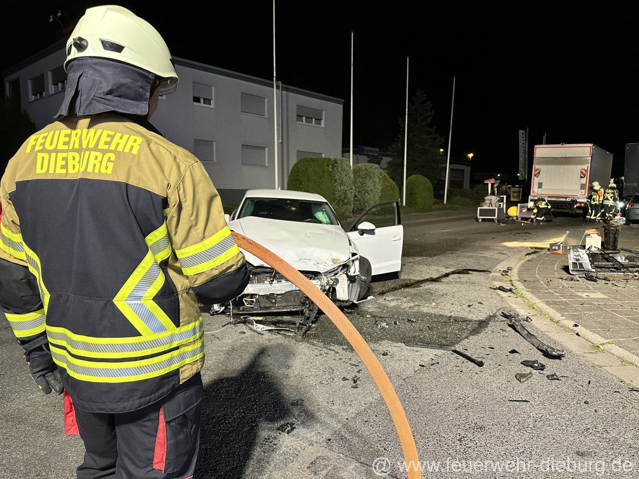 Im Kreuzungsbereich von Industrie- und Gewerbestraße kam es in der Nacht zum Freitag zu einem Verkehrsunfall zwischen einem PKW und einem LKW. Beim Eintreffen der Feuerwehr war bereits ein Rettungswagen vor Ort; die Fahrerin des PKW, in dem alle Airbags ausgelöst hatten, befand sich bereits zur Behandlung im Rettungswagen.