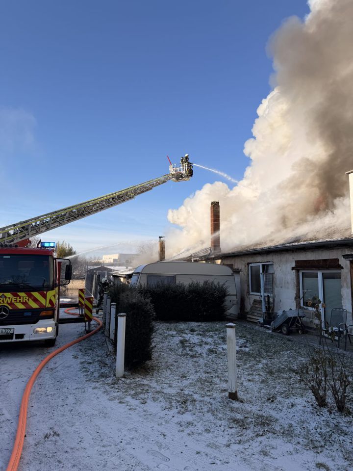 Auch Bürgermeister Frank Haus sowie der Brandschutzaufsichtsdienst mit dem Kreisbrandinspektor machten sich vor Ort ein Bild der Lage. Das Brandobjekt ist unbewohnbar und einsturzgefährdet. Die Bewohner des betroffenen Gebäudes kamen bei Angehörigen und Freunden unter.